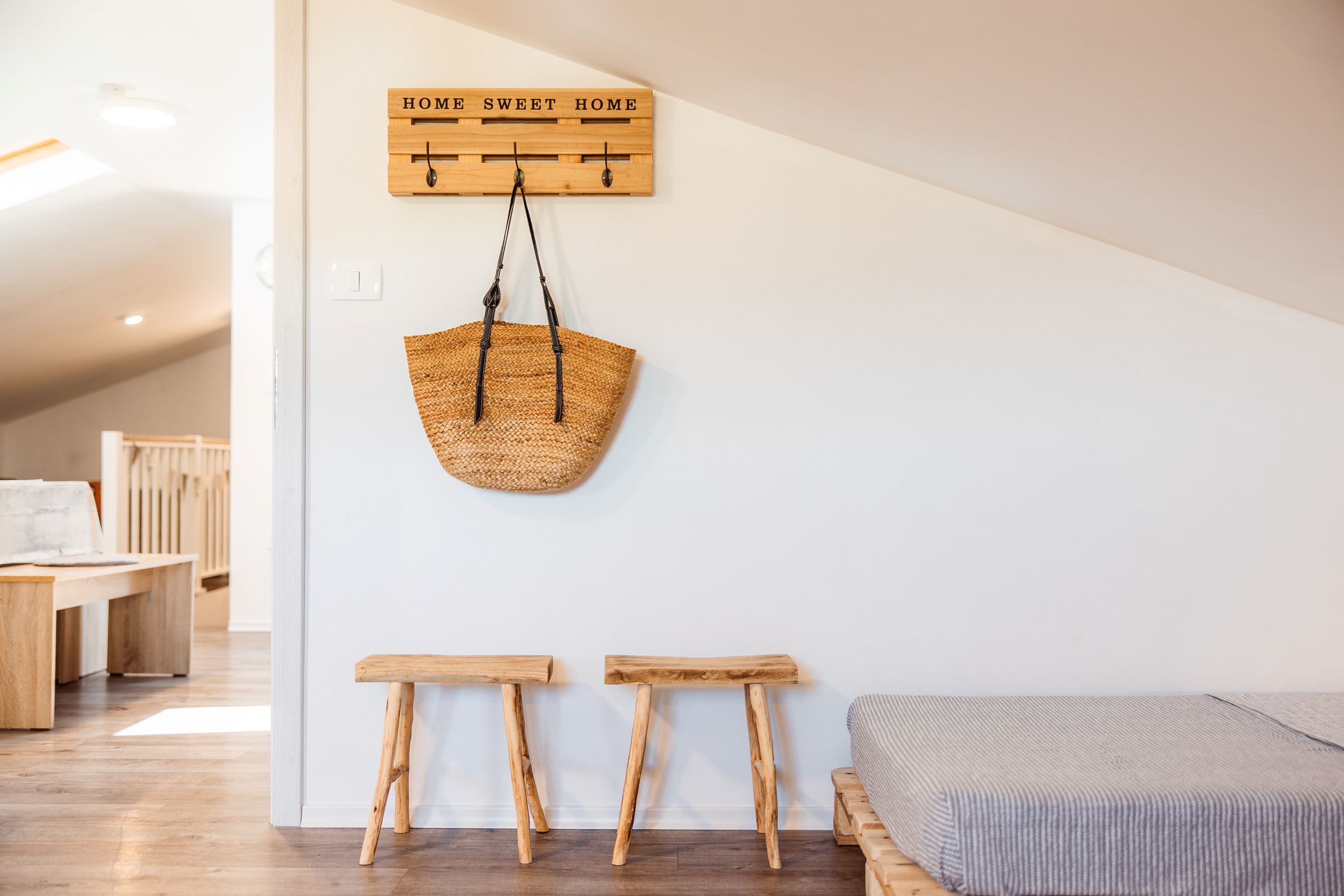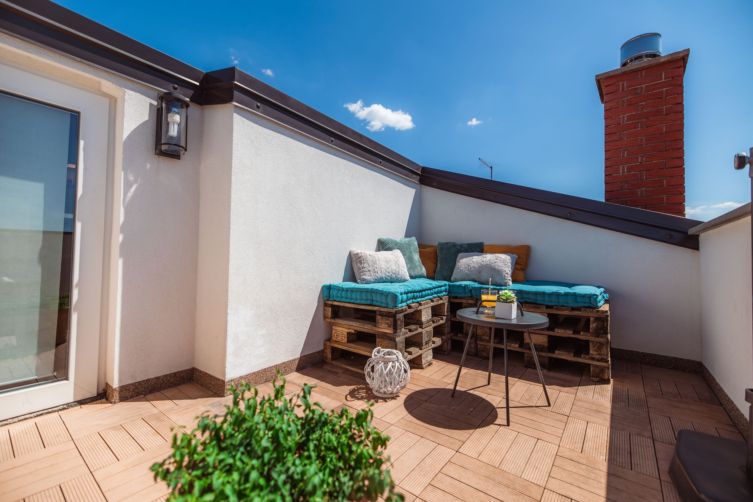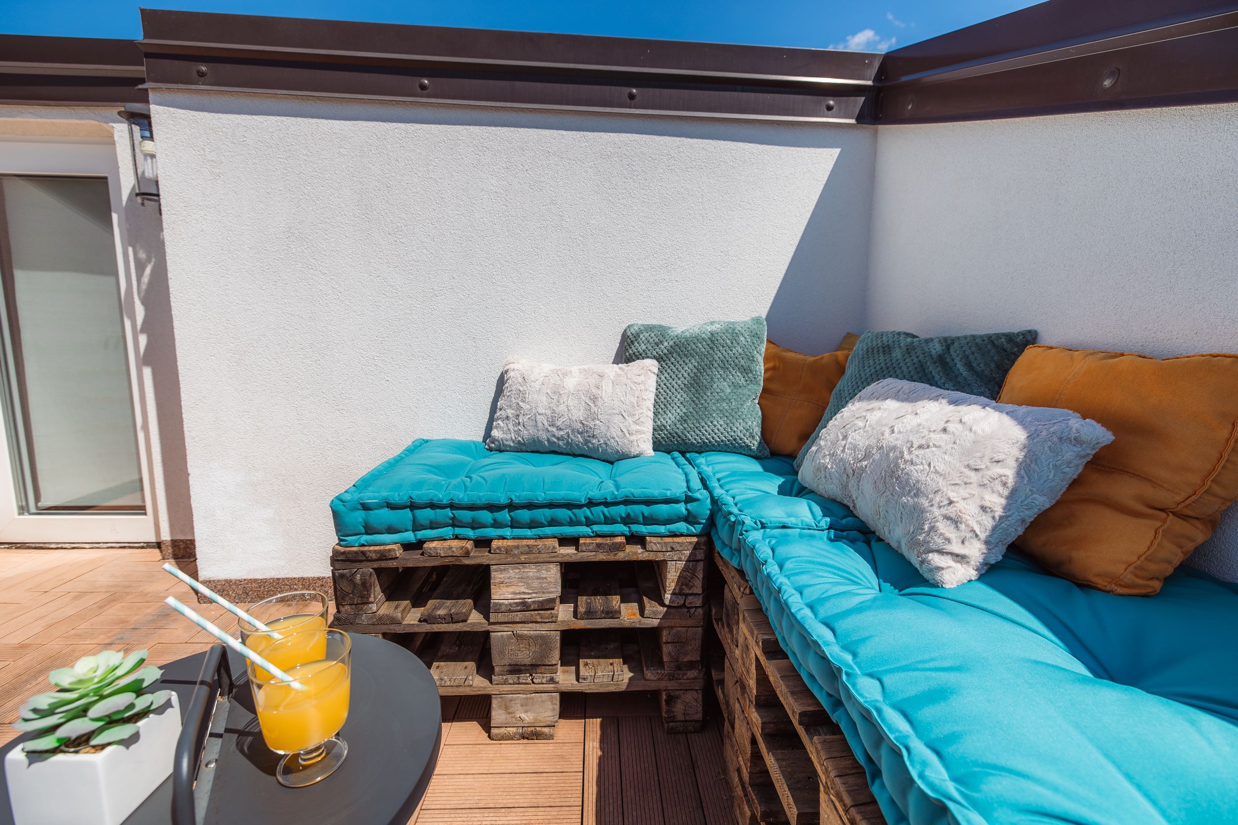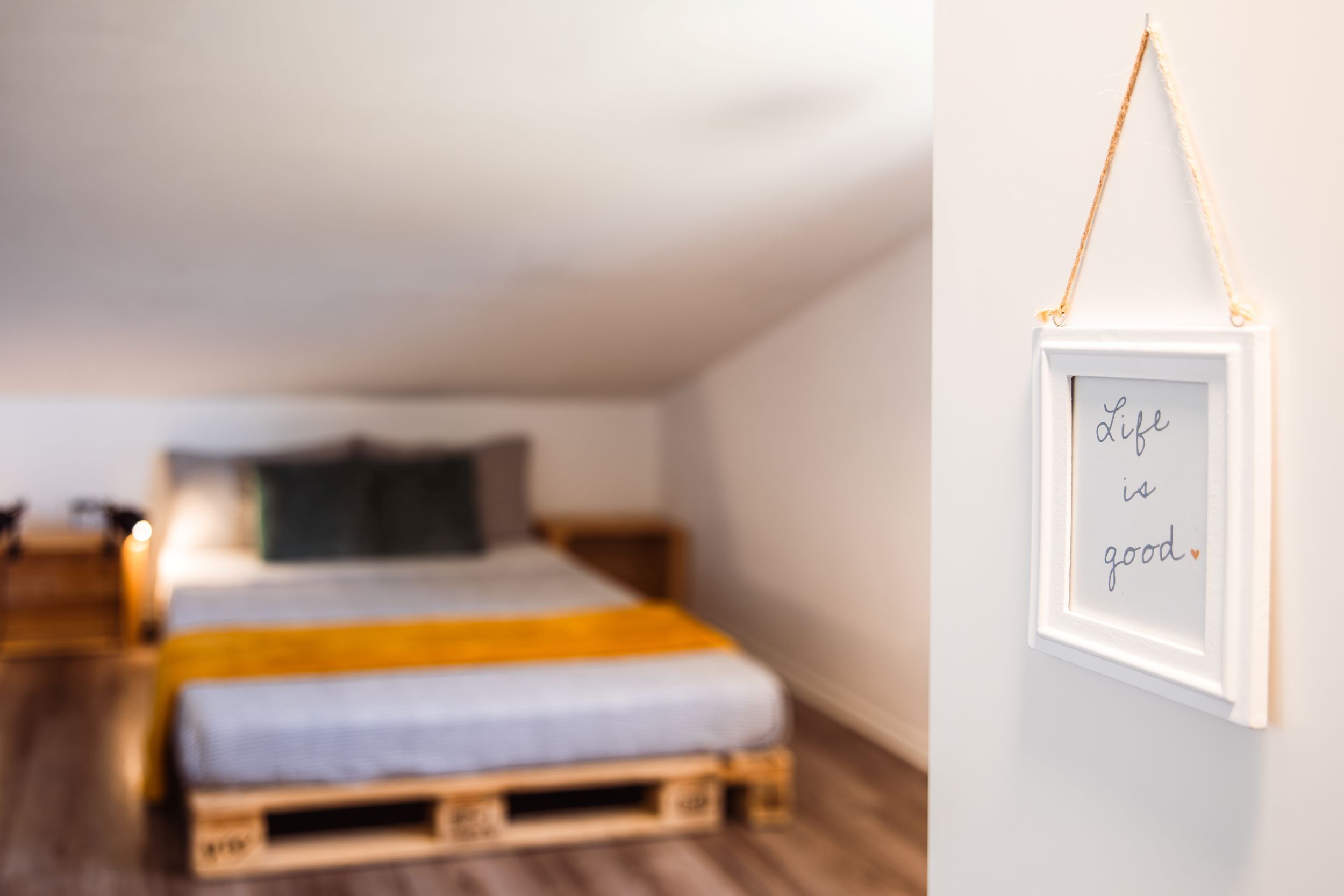 - dve enojni postelji iz palet 90 x 200 cm,