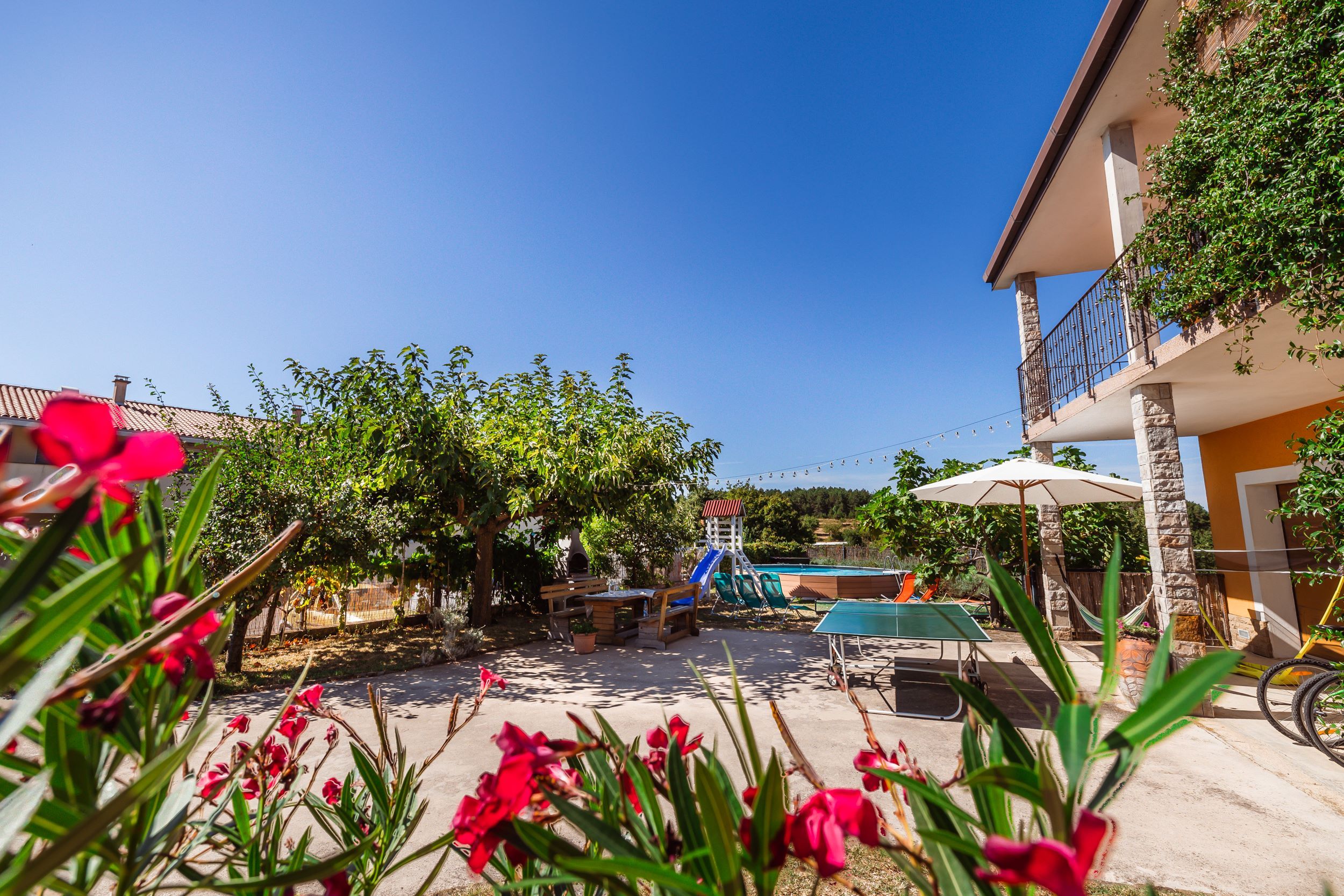 Sodobna hiša Kižin, skrita v mirni vasici Brezovica pri Gradinu, ponuja popoln umik v naravo. Dva prostorna apartmaja sta idealna za družine ali zaključene družbe, saj nudita udobno namestitev na istrskem podeželju za do 12 gostov, ki si želijo sprostitve in odklopa od mestnega vrveža. Obdana z naravnimi lepotami, je hiša odlična izhodiščna točka za pohodništvo, kolesarjenje ter odkrivanje kulturne in naravne dediščine v slovenski in hrvaški Istri. Po izletu se lahko osvežite in sprostite ob sezonskem bazenu na zelenem vrtu. Ne zamudite priložnosti za popolne počitnice – rezervirajte svoj istrski podeželski apartma še danes!